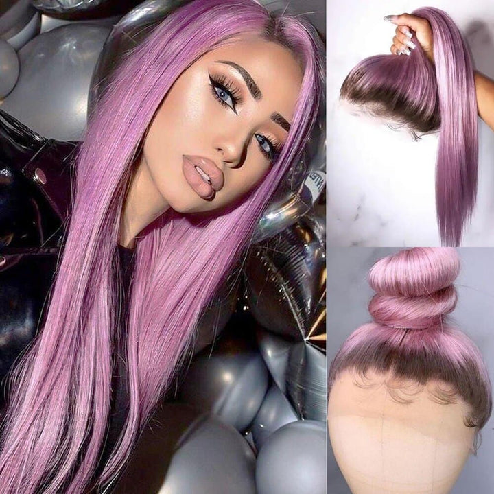 Lavender Purple Ombre Brown Roots Straight 360 Front Human Hair Wigs - Ulofey Wigs