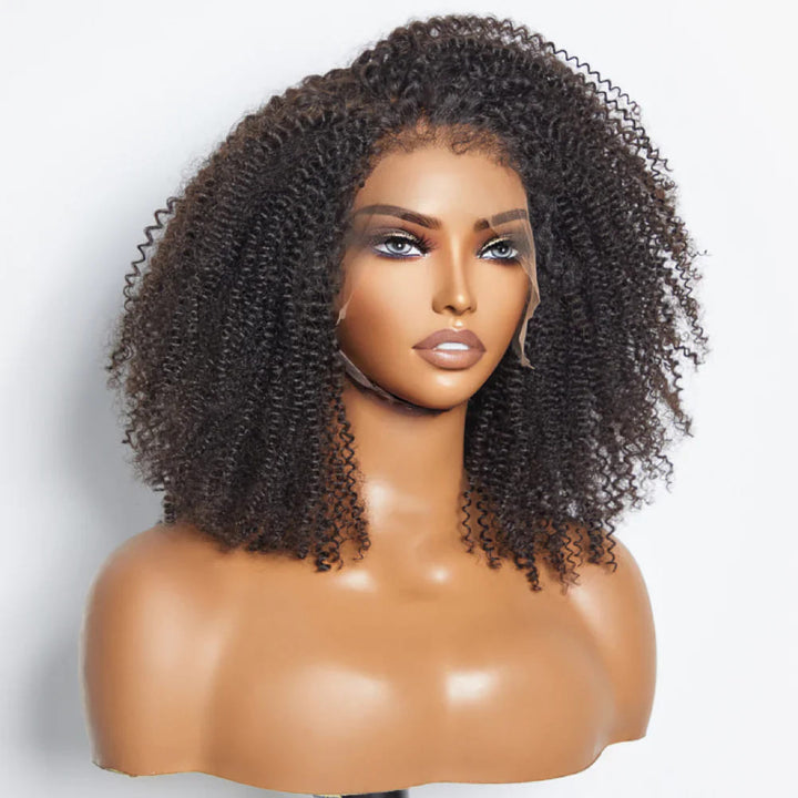 Short Black Kinky Curly 4C Edge Glueless 13*4 Front HD Lace Human Hair Wigs