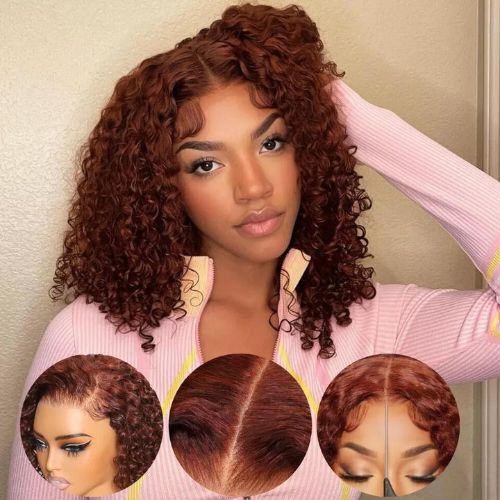 Short Reddish Brown Curly 13*4 Front HD Lace Human Hair Wigs