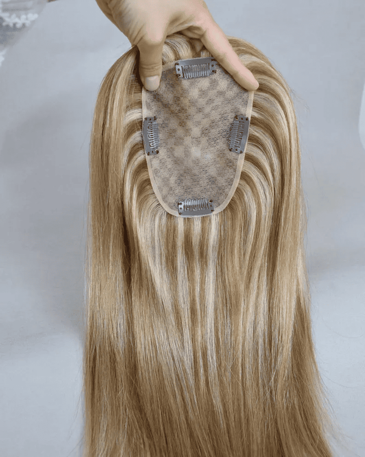 12-18inch Beige Brunettes Full Mono 4x6" Clip In Virgin Human Hair Topper - Ulofey Wigs