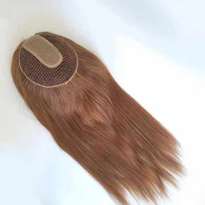 Brown Color Straight Fish Net Silk Base Virgin Human Hair Topper - ULOFEY