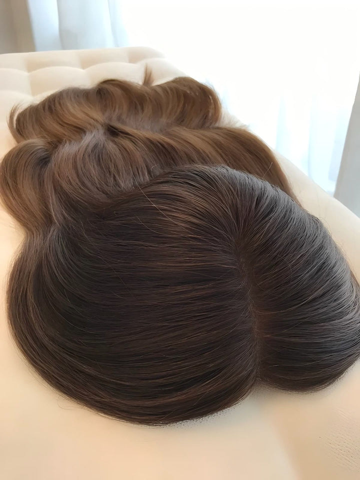 Wir akzeptieren kundenspezifische Haarfarben oder Haartopper-Basen. Die Produktionszeit hängt von den Details ab und kann 1 Woche betragen. Bitte kontaktieren Sie uns für weitere Details.