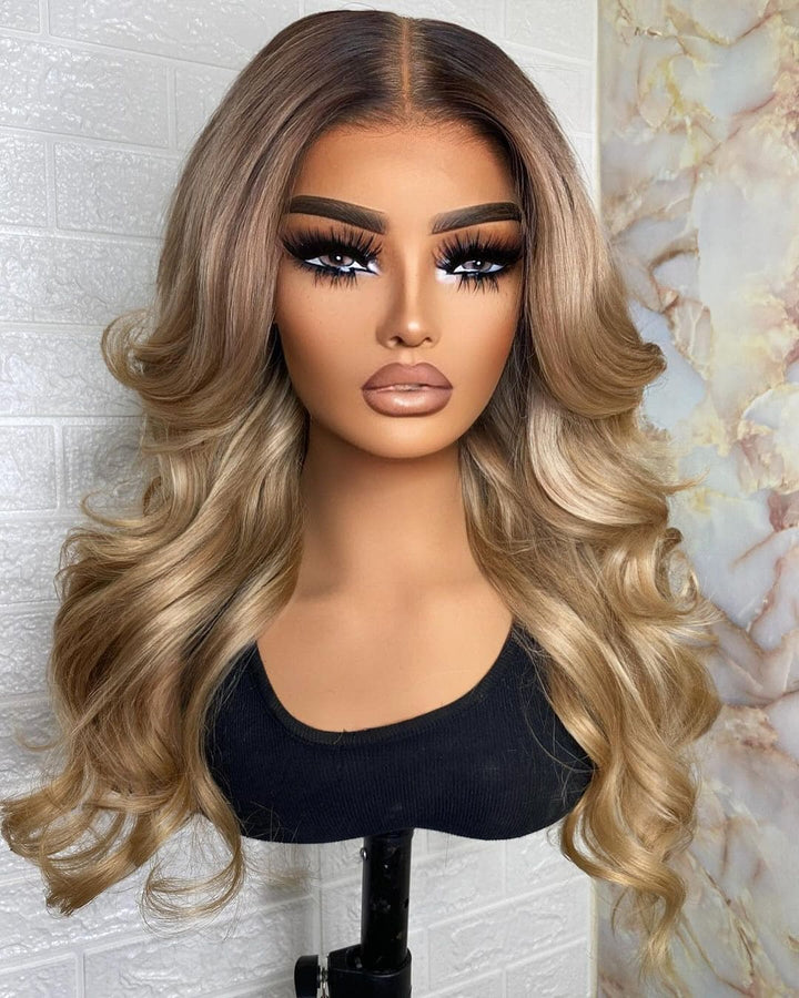 10-26inch Blonde Hightlight Ombre Body Wave Hd Transparent Full Lace Human Hair Wigs For Women - ULOFEY