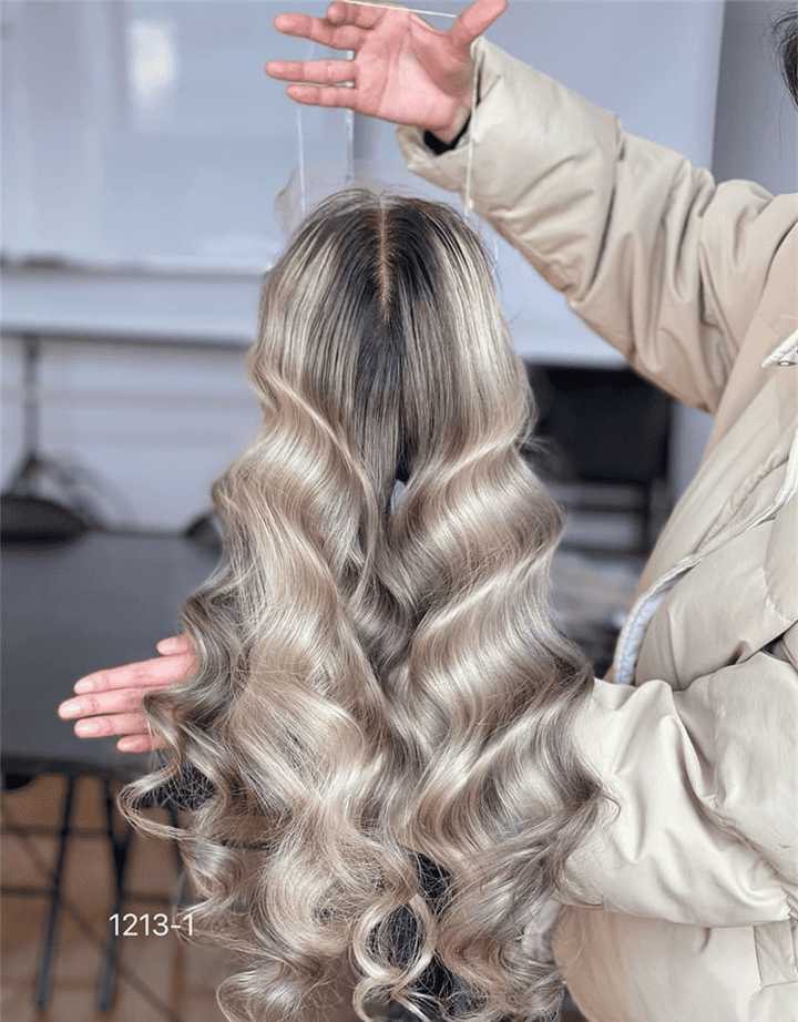12-20inch Ash Blonde Ombré 8"*8" Lace Front Clip In Virgin Human Hair Topper - Ulofey Wigs