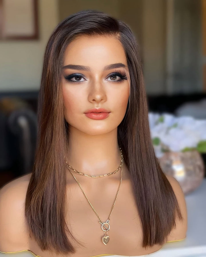 14-24inch Chocolate Brown Ombre HD Lace Front Slavic Virgin Human Hair Wigs
