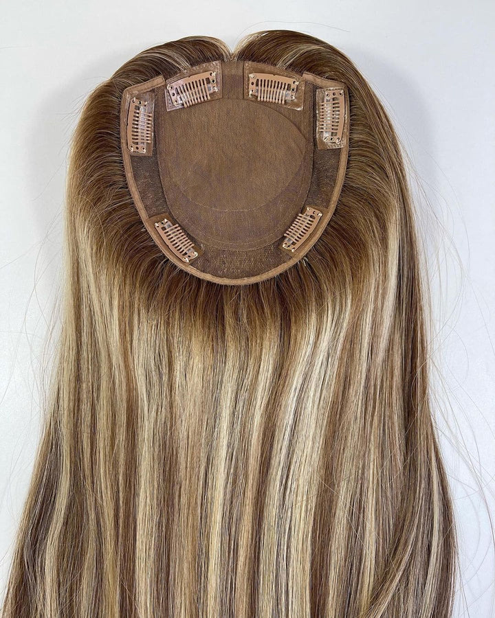 Honey Blonde Highlights 8”*8” Silk Base Clip In Virgin Human Hair Topper - ULOFEY
